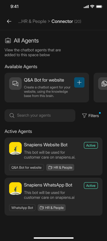 Snapiens is a powerful AI-driven mobile companion app designed to help users interact with their personal knowledge base on the go. Built as a companion to the snapiens.ai web platform, it allows users to organize documents, files, and links into structured "Spaces" and "Folders," making them instantly accessible for context-aware conversations with an AI assistant. The app focuses on providing read-only access to knowledge bases while offering a seamless, real-time chat experience with documents.