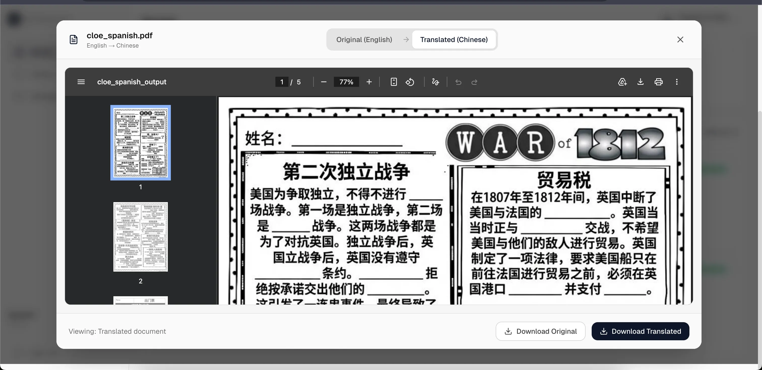 Worksheet Translation Platform